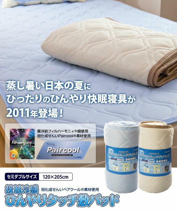 | 接触冷感ひんやりタッチ クール敷 パッド シングル ベージュ ¥2,979(税込) 蒸し暑い日本の夏におすすめのひんやり快眠寝具が登場!●ひんやりタッチのヒミツはペアクール?素材肌に当たる表地には旭化成せんいの接触冷感生地ペアクール?素材を採用!ペアクール?は吸収湿性に優れたベンベルグ?と特殊機能ポリエステルを… |