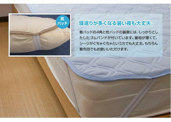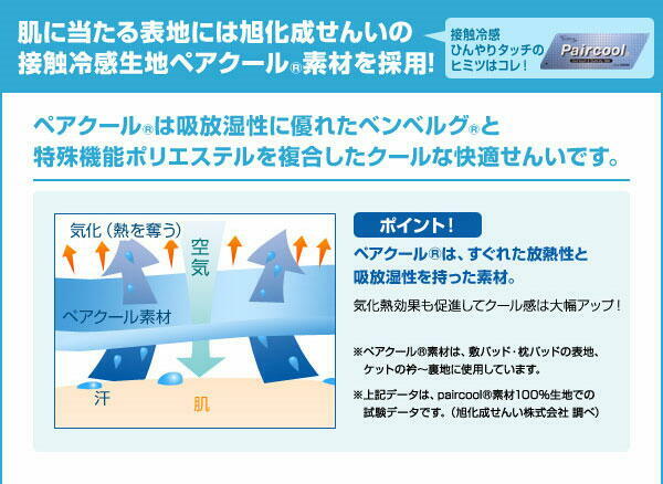※接触冷感ひんやりタッチクールクール敷パッドは、衿〜内側のみペアクール®素材となります。