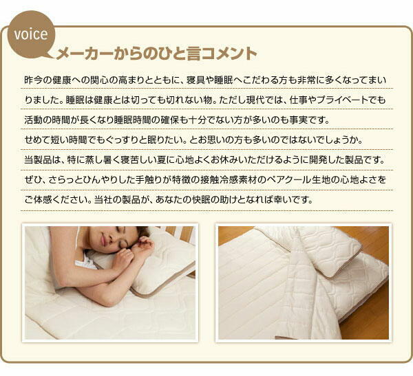 抗菌性・吸汗性・防ダニ性などに優れ、寝汗をかく夏の季節にもおすすめです。